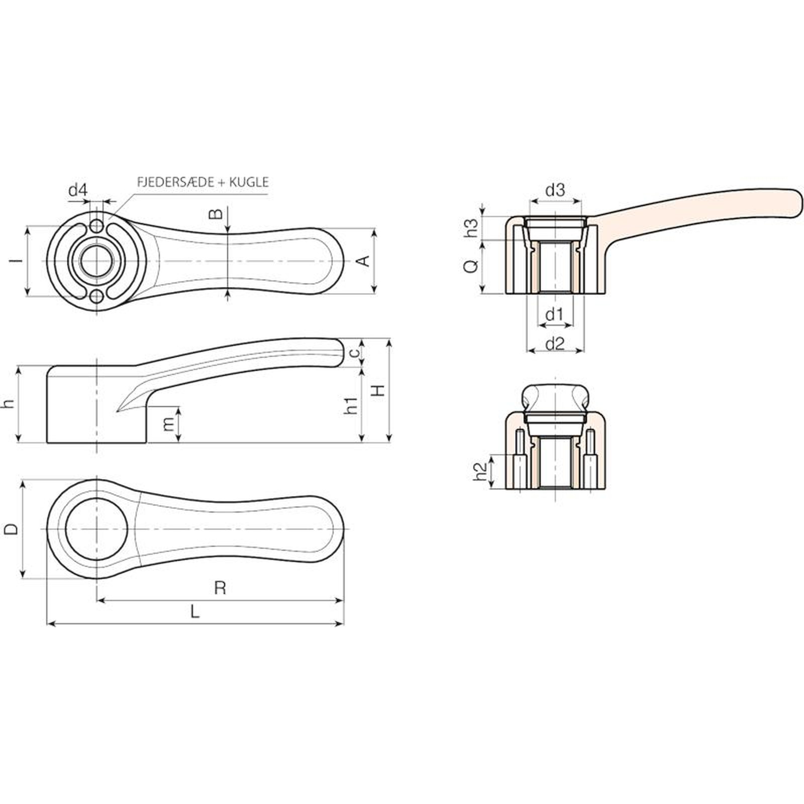 | Kode | Art. | L | R | D | H | h | h1 | h2 | h3 | m | I | A | B | c | d2 | d3 | d4 | d1 6H | Q | Weight (g) |