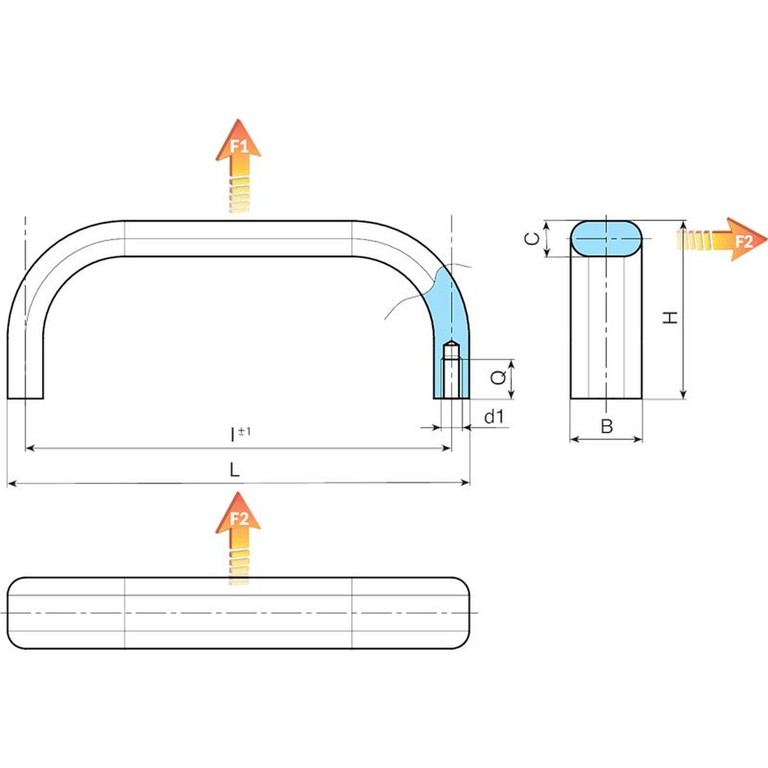 | Kode | art. | L | I ±1 | H | B | C | Q | d1 | Weight (g) | F1 (N) | F2 (N) |