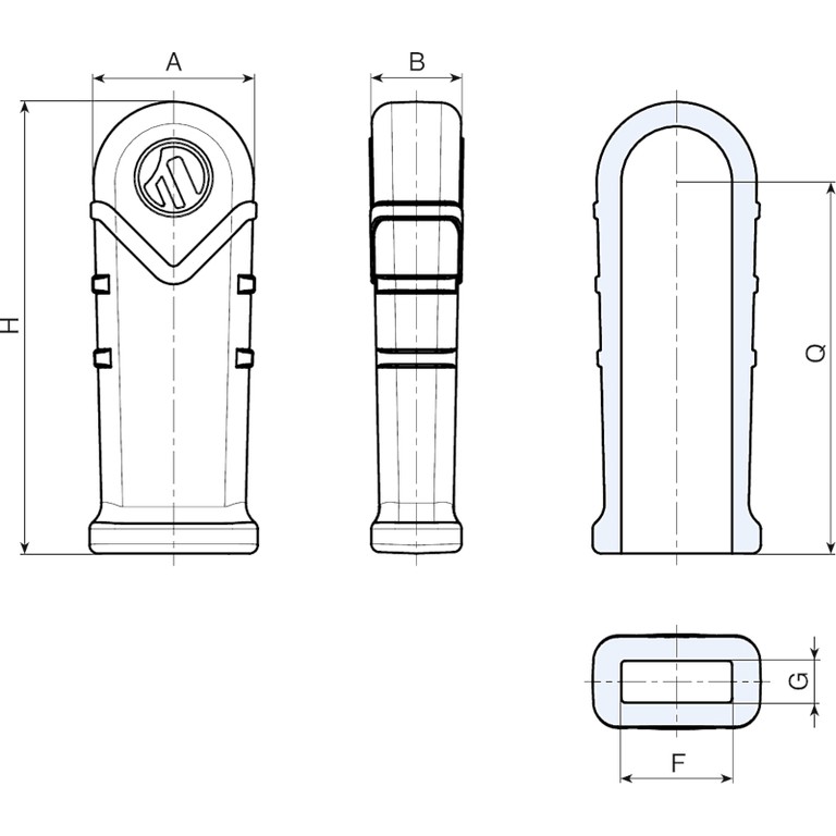 Kode | art. | H | A | B | F | G | Q | Weight (g) |
