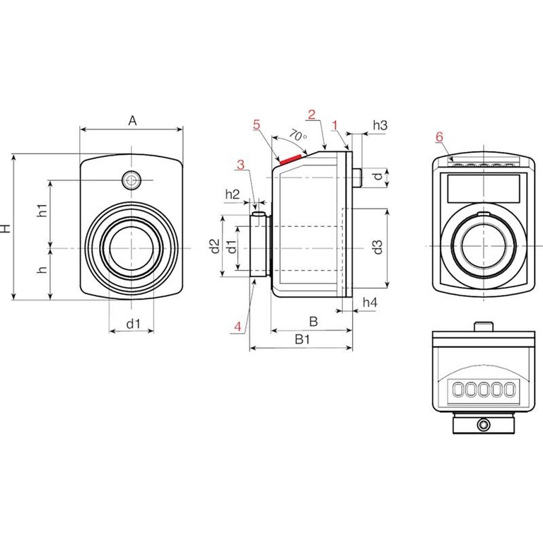 Tællerblokken kan placeres på anvendelsesstedet i fire forskellige positioner. I bedes vælge den, der passer bedst til jeres anvendelse: