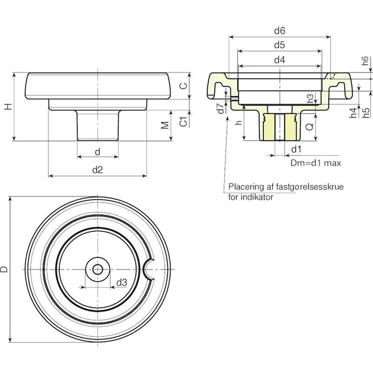 Kode | art. | D | H | d | d2 | M | C | C1 | d3 | d4 | d5 | d6 | d7 | h | h3 | h4 | h5 | h6 | Dm | d1 | Q | Weight (g) |