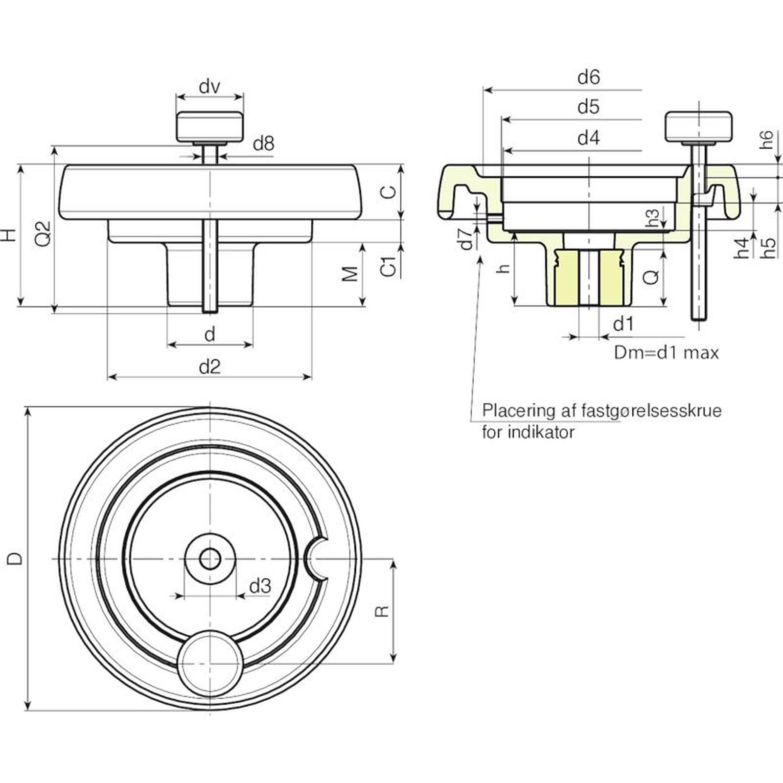 Håndhjul til fastspænding: