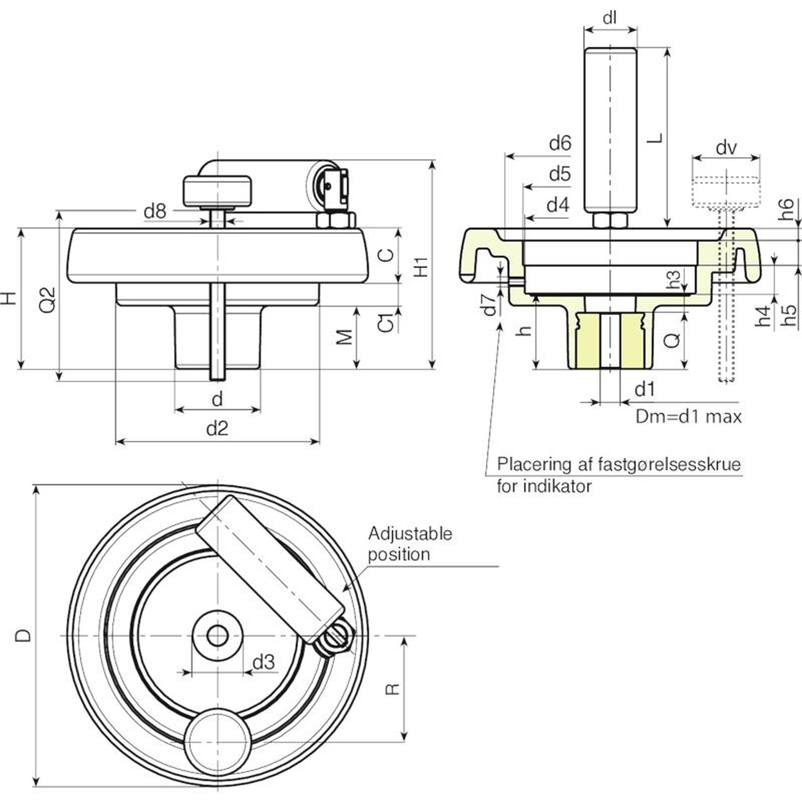Brug tyngdekraftsindikatorer model serie K650 eller K660. Indikatoren kan kun anvendes i den lodrette position (vandret maskinakse). Indikatoren og den tilsvarende fæstestift d7 skal erhverves separat. Indhent yderligere oplysninger om indikatorerne på siderne vedrørende artikel K650 og K660.