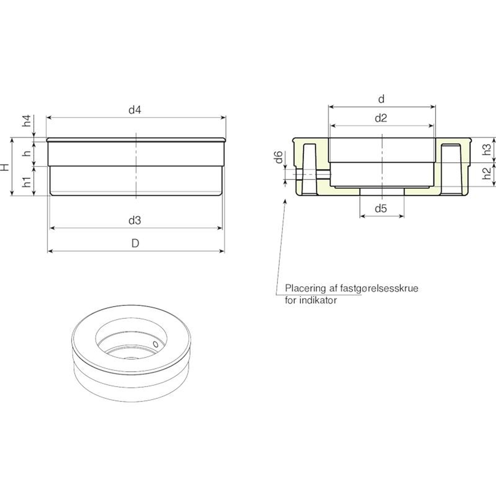 | Kode | art. | D | d | d2 | d3 | d4 | d5 | d6 | H | h | h1 | h2 | h3 | h4 | Weight (g) |