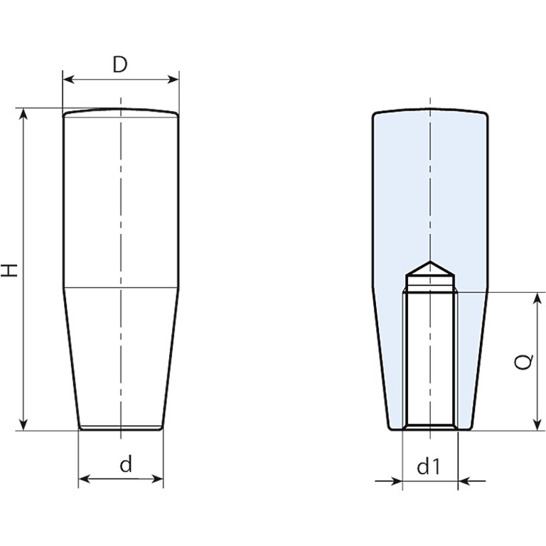 Kode | art. | H | D | d | d1 | Q | Weight (g) |