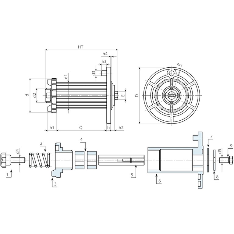 Kode | art. | D | HT | d | d1 | d2 | d3 | d4 | d5 | h | h1 | h2 | h3 | h4 | E | Q | R | Weight (g) |