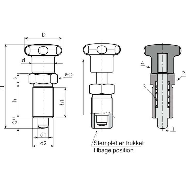 (1) Positioneringsbolttap af rustfrit stål (AISI 303).