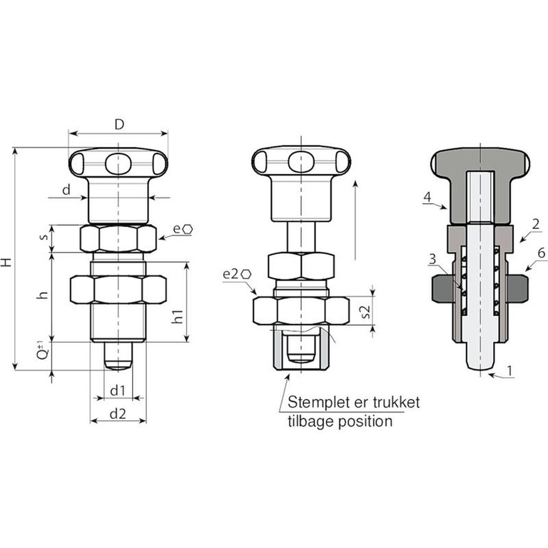 På forespørgsel og i funktion af antal kan positioneringsbolten leveres fuldstændigt demonteret.
