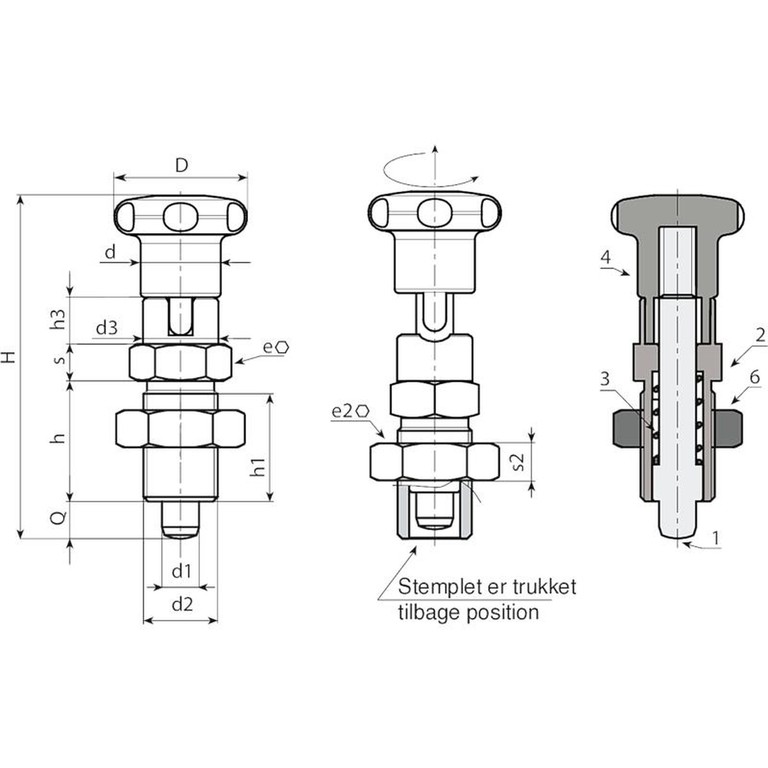På forespørgsel og i funktion af antal kan positioneringsbolten leveres fuldstændigt demonteret.