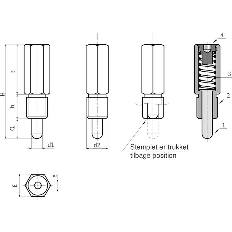 (4) Drejet lukkeprop af stål med sekskantet nøglesæde, til fastspænding.