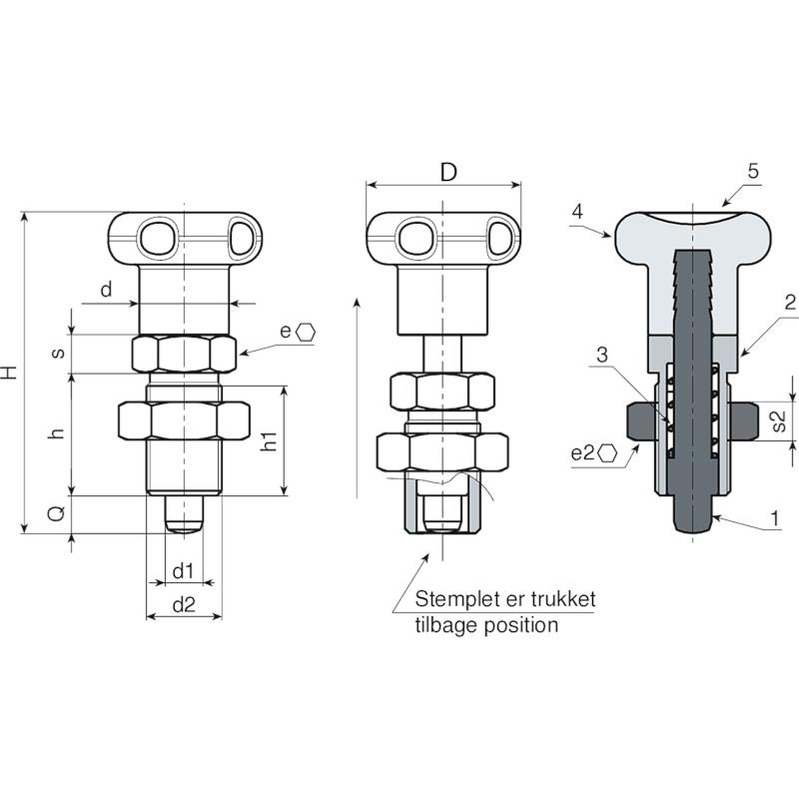 DREJEKNAP MED GEVINDSKÅRET POSITIONERINGSBOLT AF STÅL MED LÅSEMØTRIK