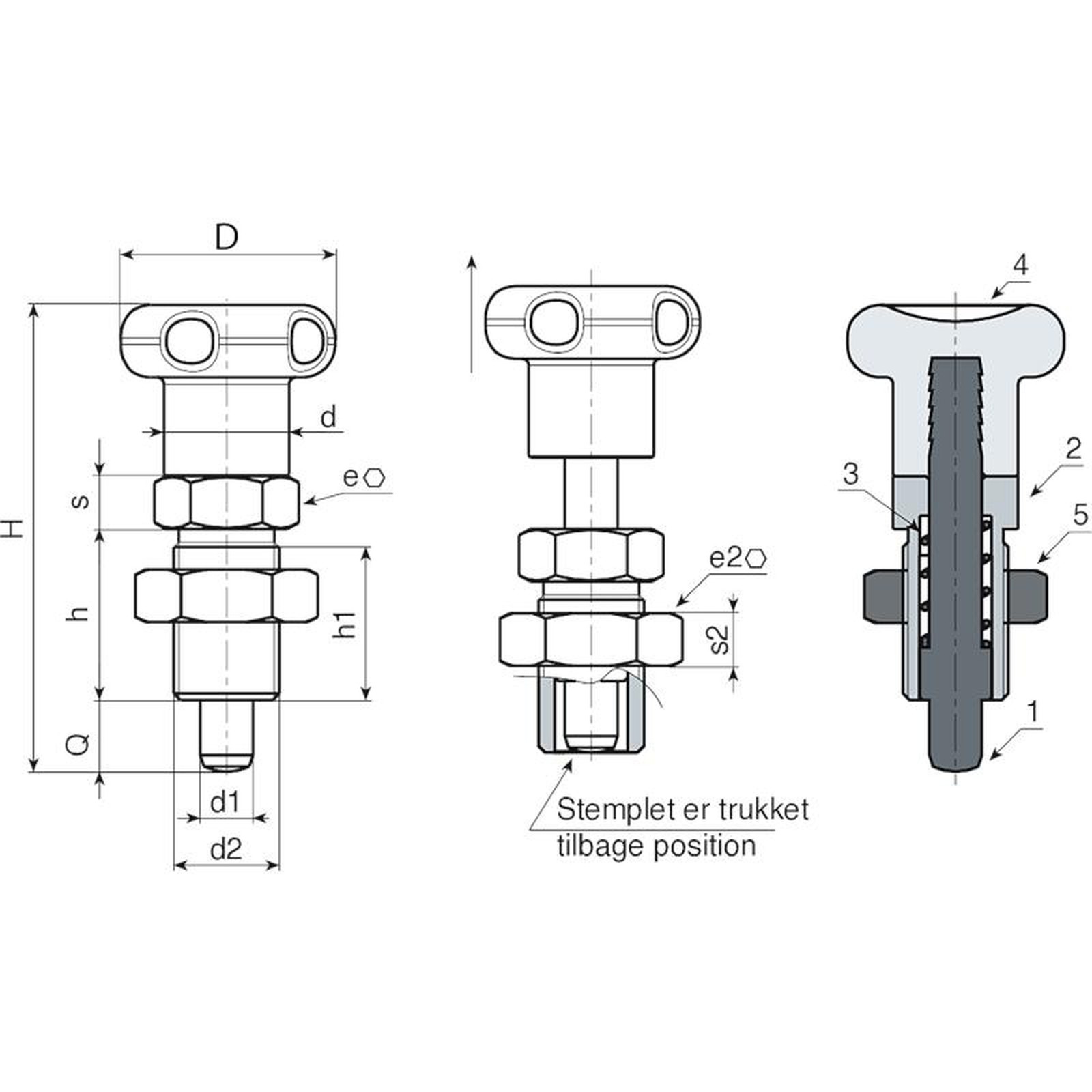(1) Positioneringsbolttap af rustfrit stål (AISI 303).