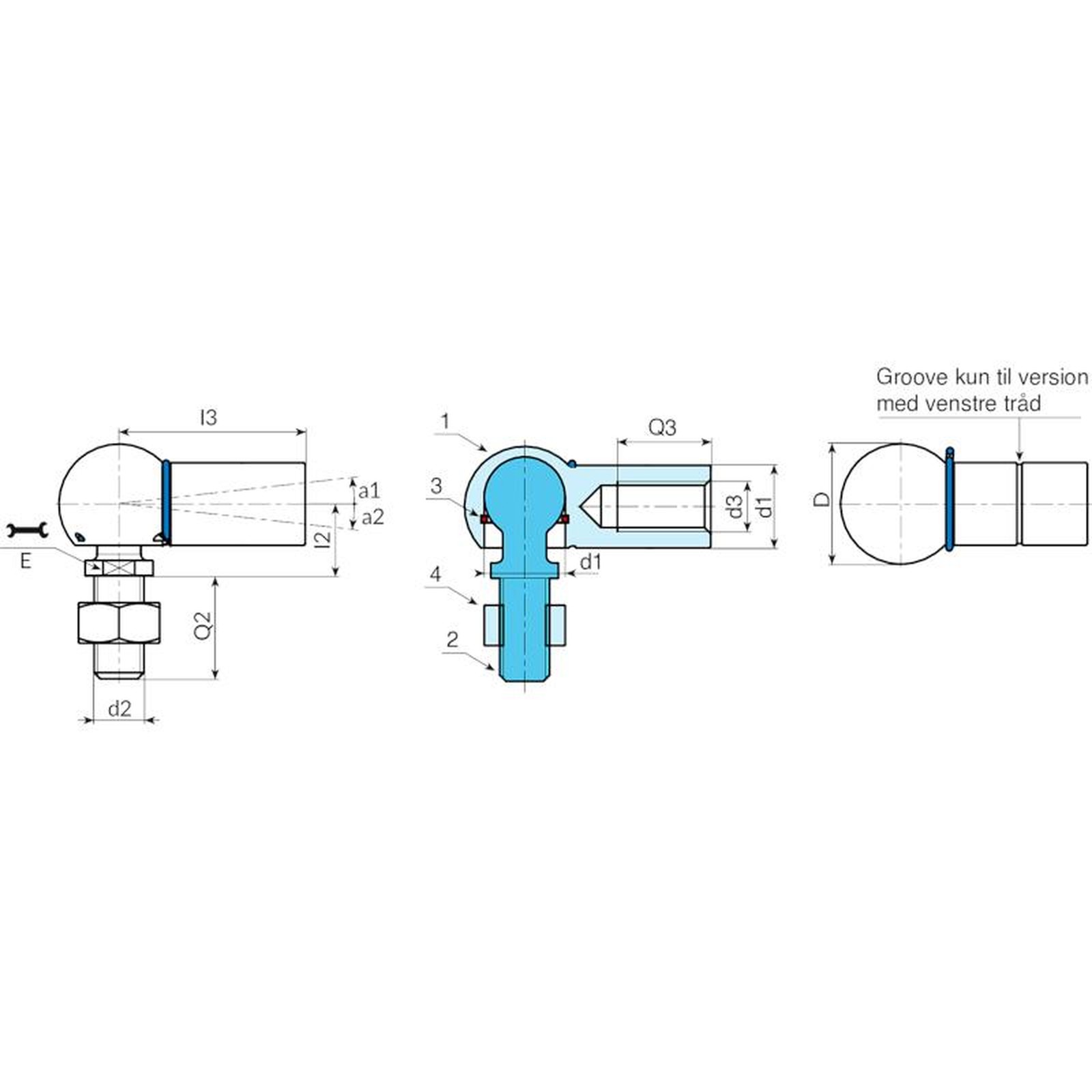 | Kode | Art. | d2 6g | d3 6H | D | E | I2 | I3 | Q2 | d1#r# h9-H9 | Q3 | a1 | a2 | Weight (g) |