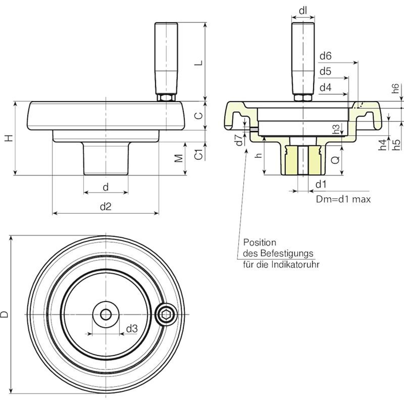 Bedienungshandräder mit Aufnahme für Schwerkraftanzeiger