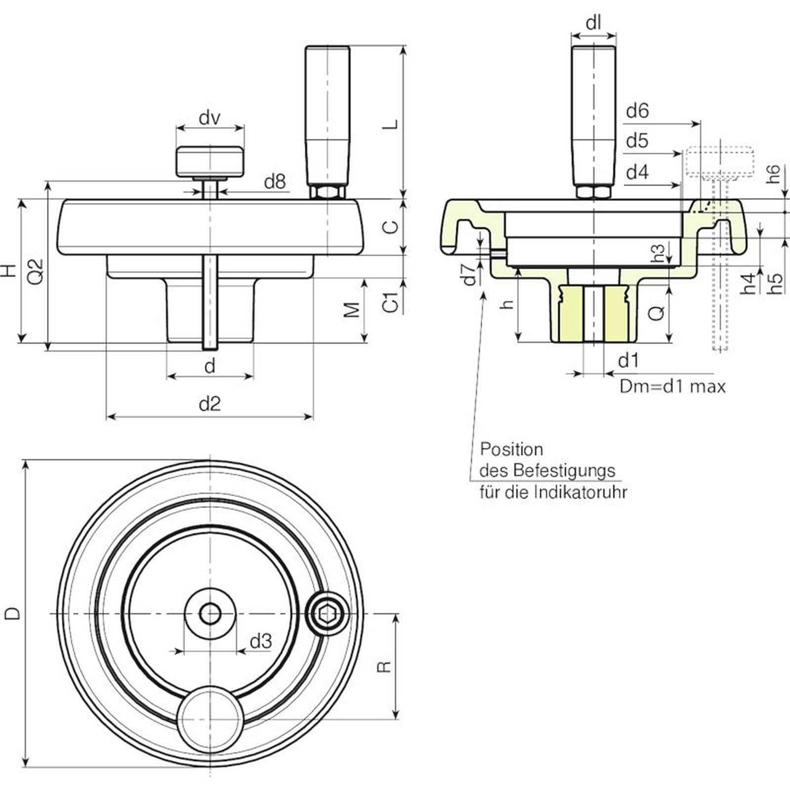 SCHEIBENHANDRAD FÜR STELLUNGSANZEIGER MIT DREHGRIFF UND ARRETIERUNG