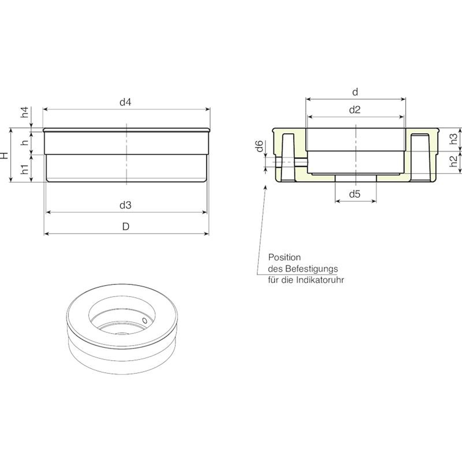 | Code | Art. | D | d | d2 | d3 | d4 | d5 | d6 | H | h | h1 | h2 | h3 | h4 | Gewicht (g) |