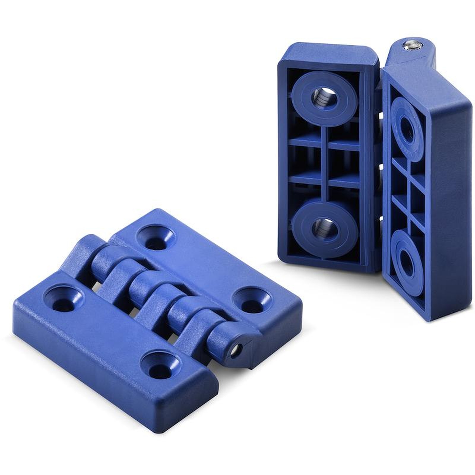 SCHARNIER MIT DURCHGANGSLÖCHERN AUS LEBENSMITTELTAUGLICHEM MATERIAL, BLAU