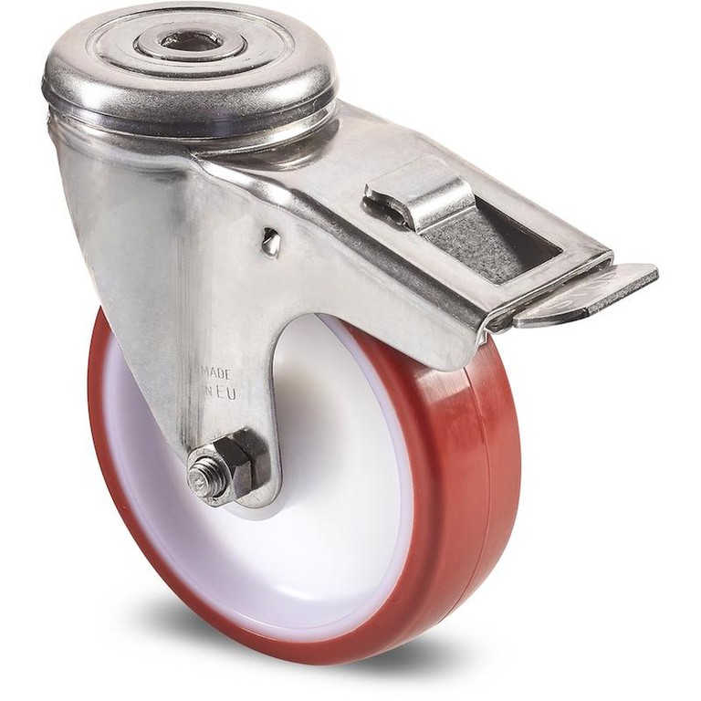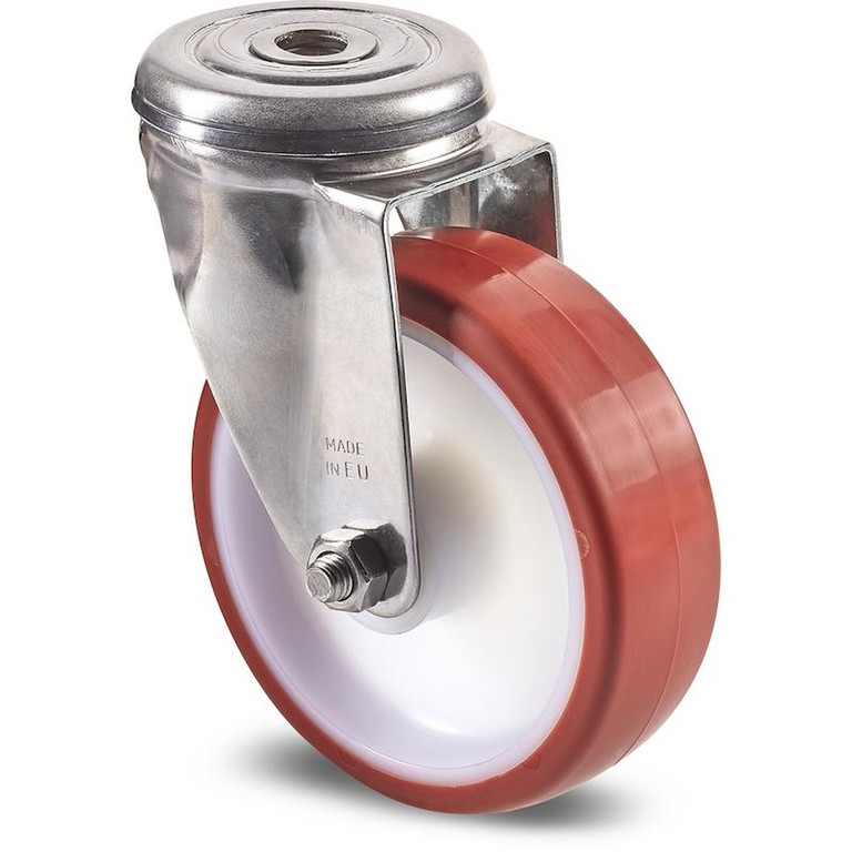 LENKROLLE AUS POLYAMID, LAUFFLÄCHE AUS POLYURETHAN, DREHEINHEIT AUS EDELSTAHL