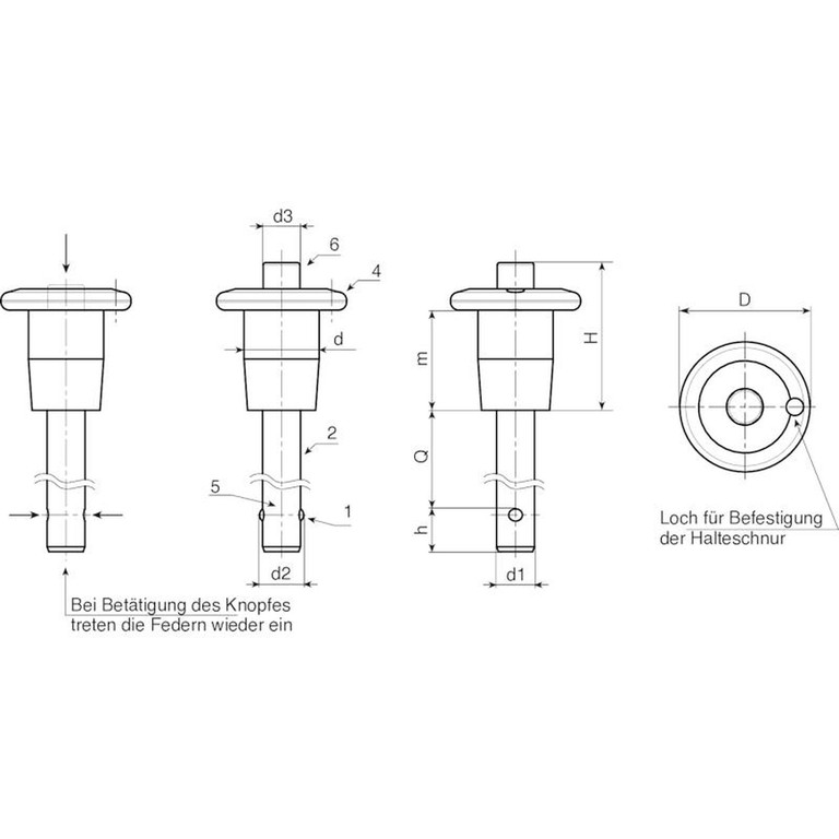 KUGELSPERRBOLZEN AUS EDELSTAHL MIT GRIFF