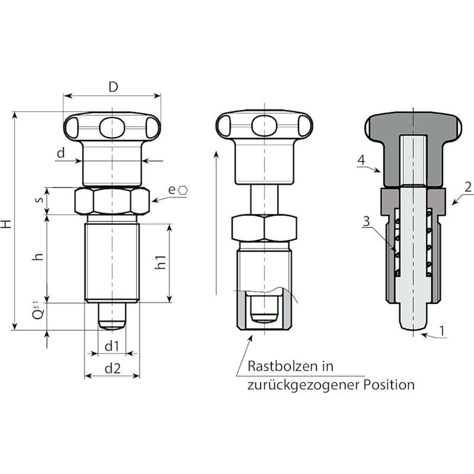 > Wir empfehlen die Ausführung der Bohrung für die Aufnahme des Raststiftes mit Toleranz H7.