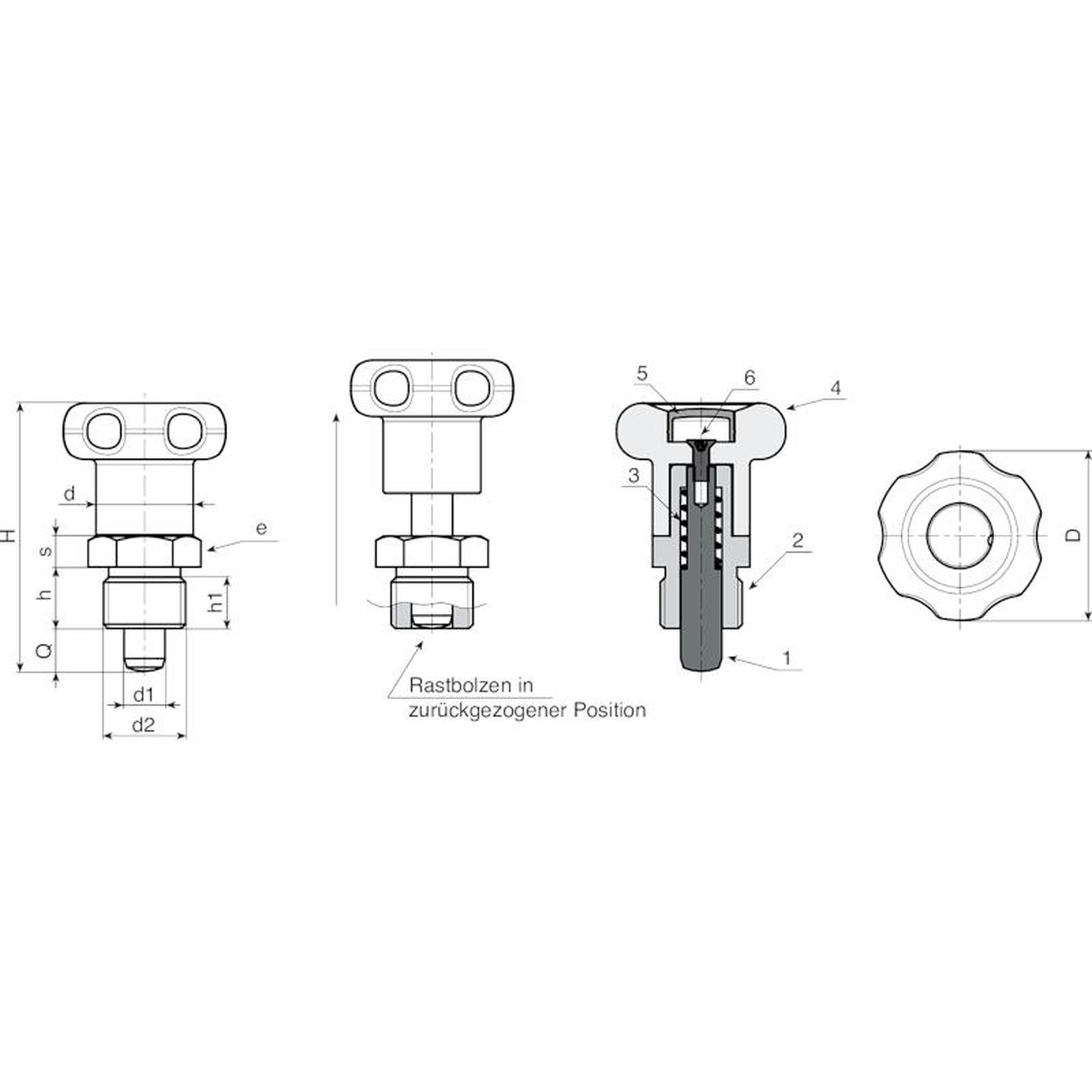 > Wir empfehlen die Ausführung der Bohrung für die Aufnahme des Raststiftes mit Toleranz H7.