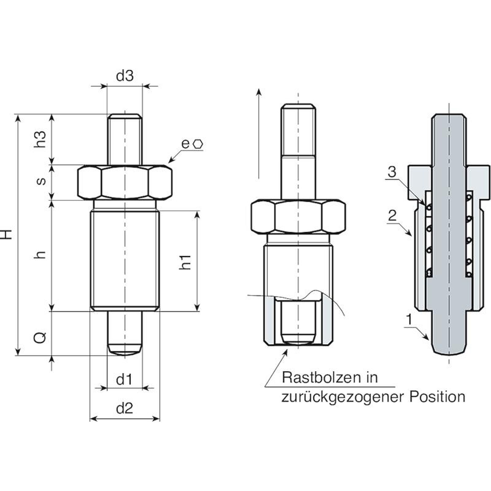 > Wir empfehlen die Ausführung der Bohrung für die Aufnahme des Raststiftes mit Toleranz H7.