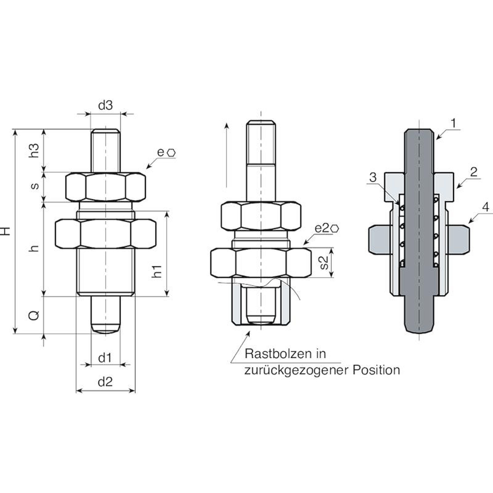 > Wir empfehlen die Ausführung der Bohrung für die Aufnahme des Raststiftes mit Toleranz H7.