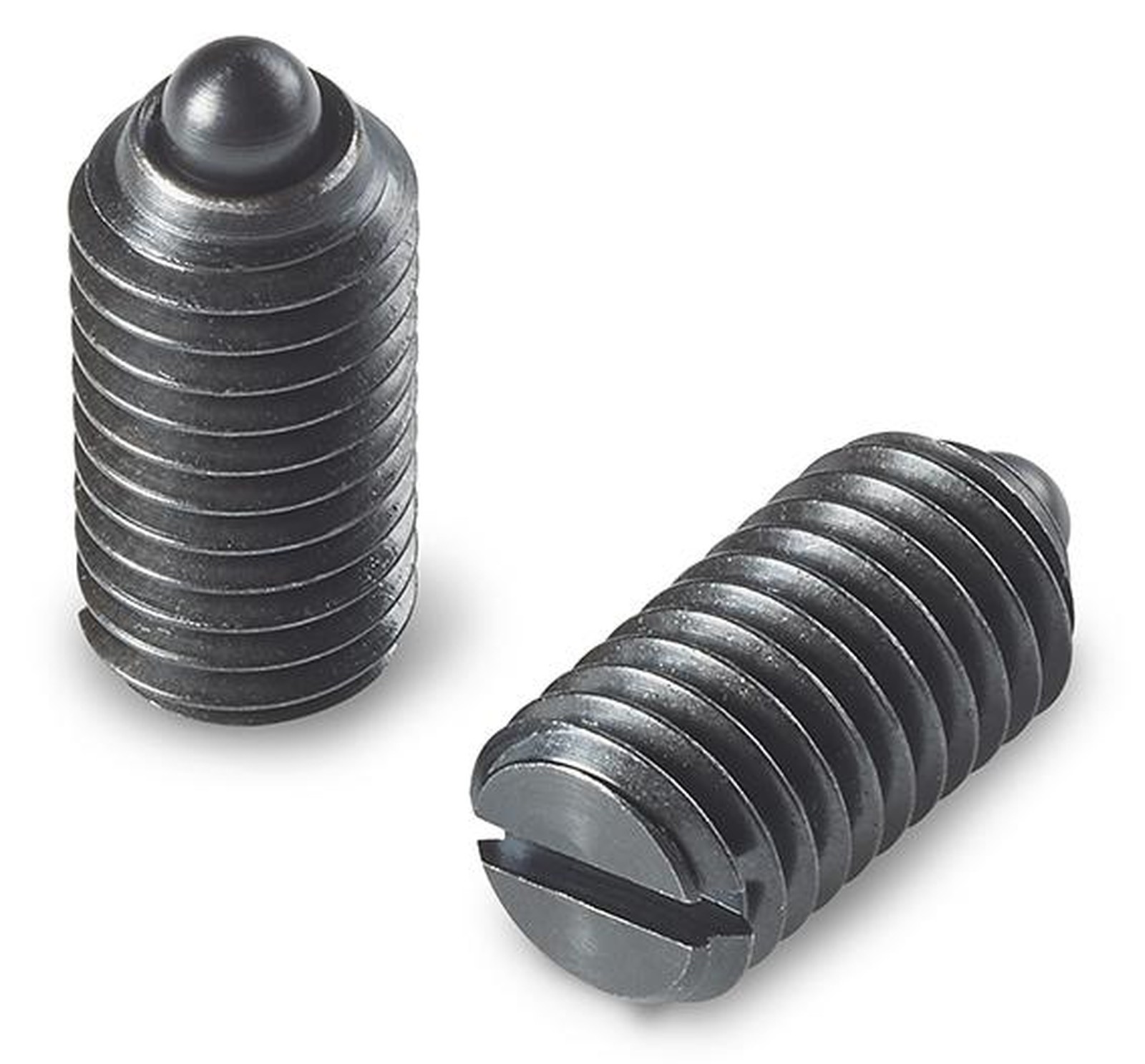 THREADED STEEL SPRING PLUNGER WITH SLOTTED END AND NOSE PIN