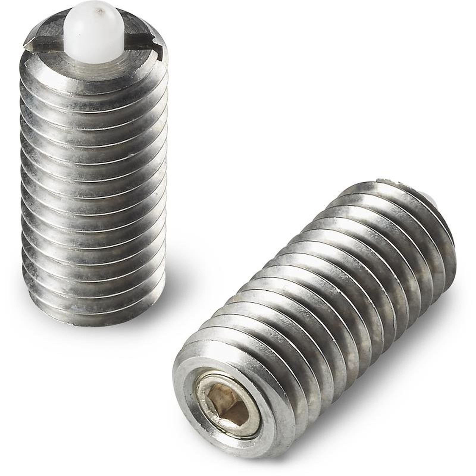 THREADED STEEL SPRING PLUNGER WITH GRUB SCREW AND PLASTIC NOSE PIN
