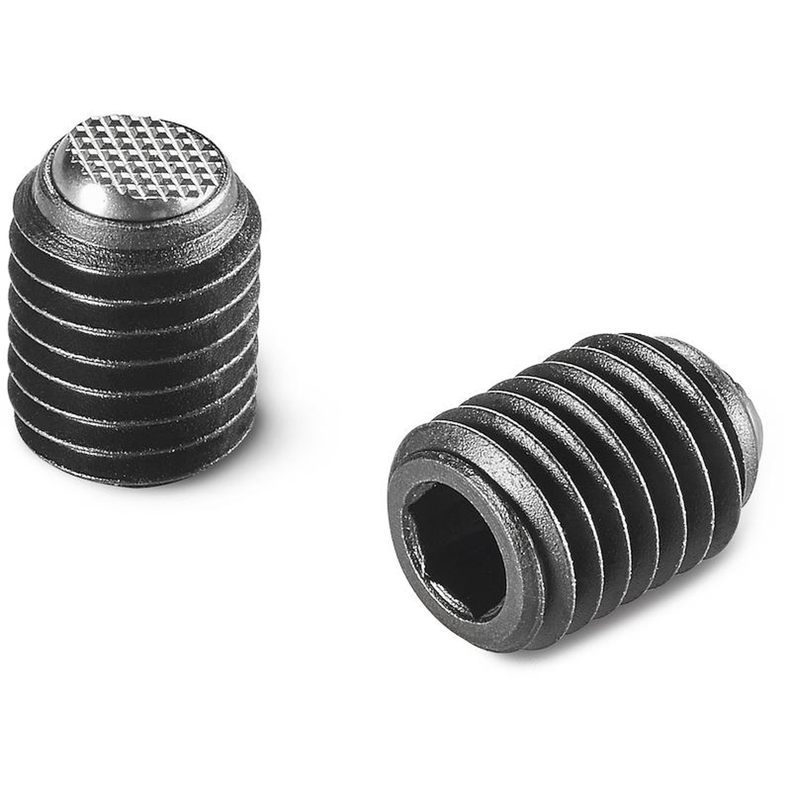 THREADED STEEL GRUB SCREW WITH HEAGON SOCKET END AND FLATTENED KNURLED BALL POINT