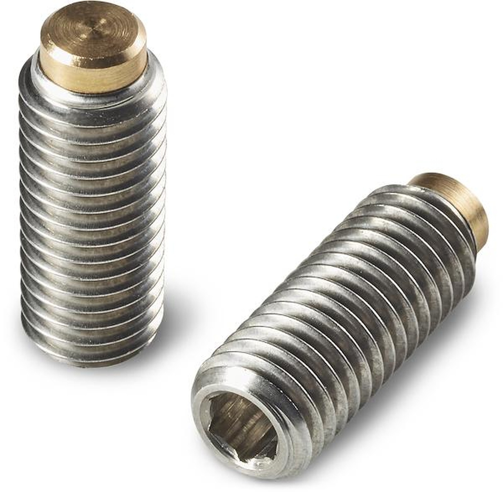 THREADED STEEL GRUB SCREW WITH HEAGON SOCKET END AND BRASS NOSE PIN