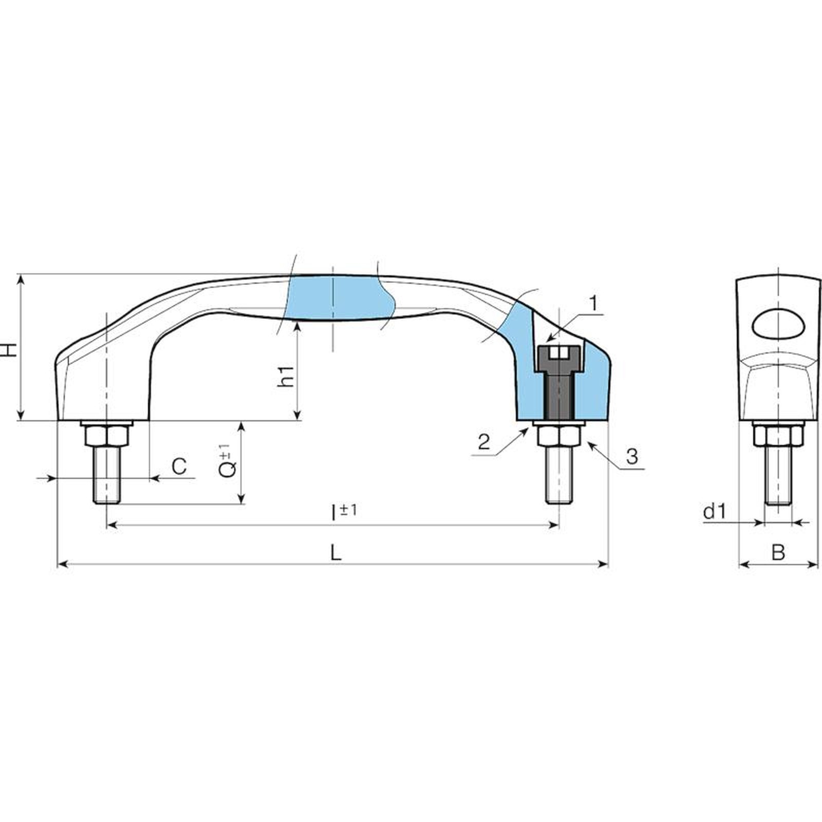 | Code | art. | L | I ±1 | B | C | H | h1 | d1 6g | Q | Weight (g) | F1 (N) |