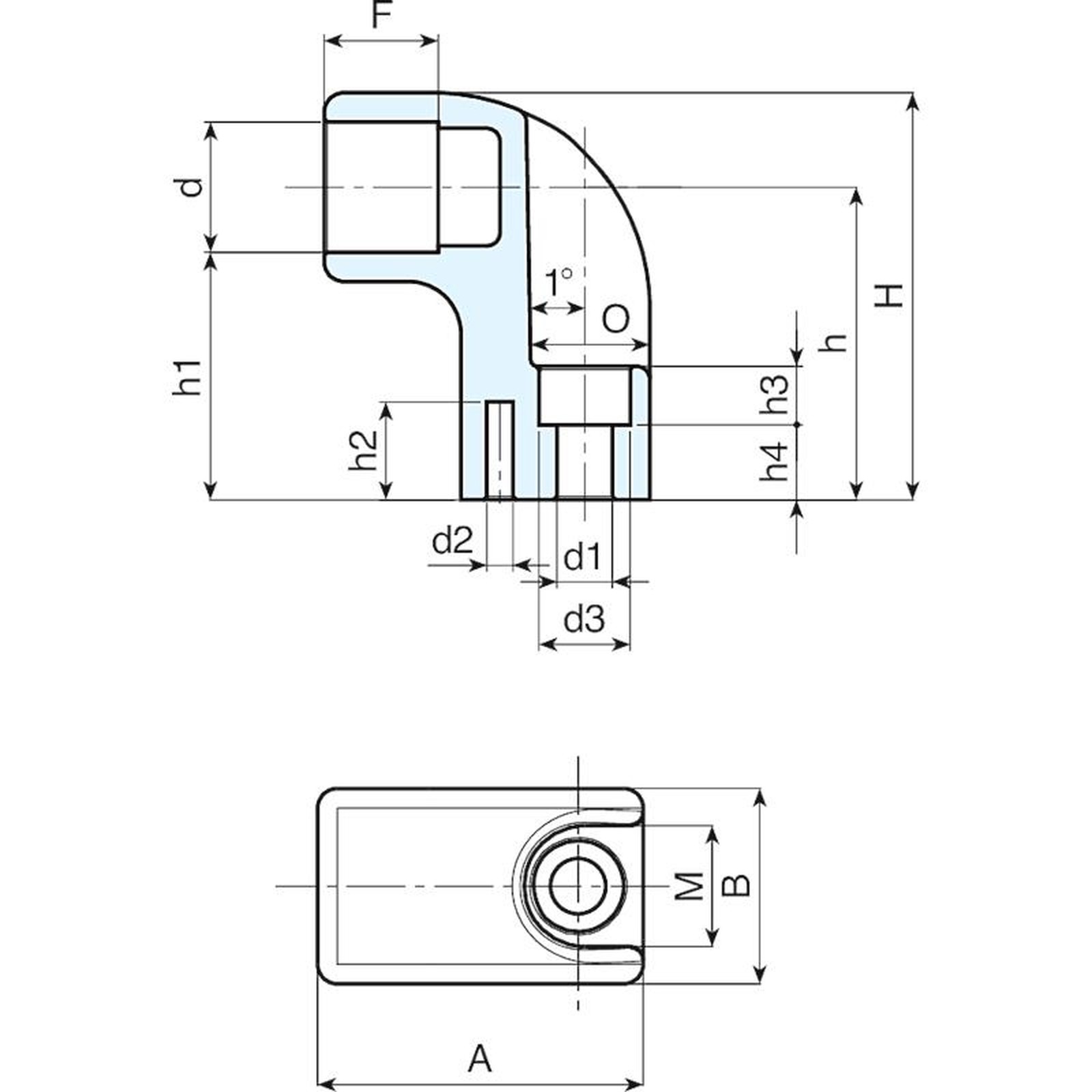 | Code | art. | d | d1 | d3 | d2 | A | B | H | h | h1 | h4 | h3 | h2 | M | O | F | Weight (g) |
