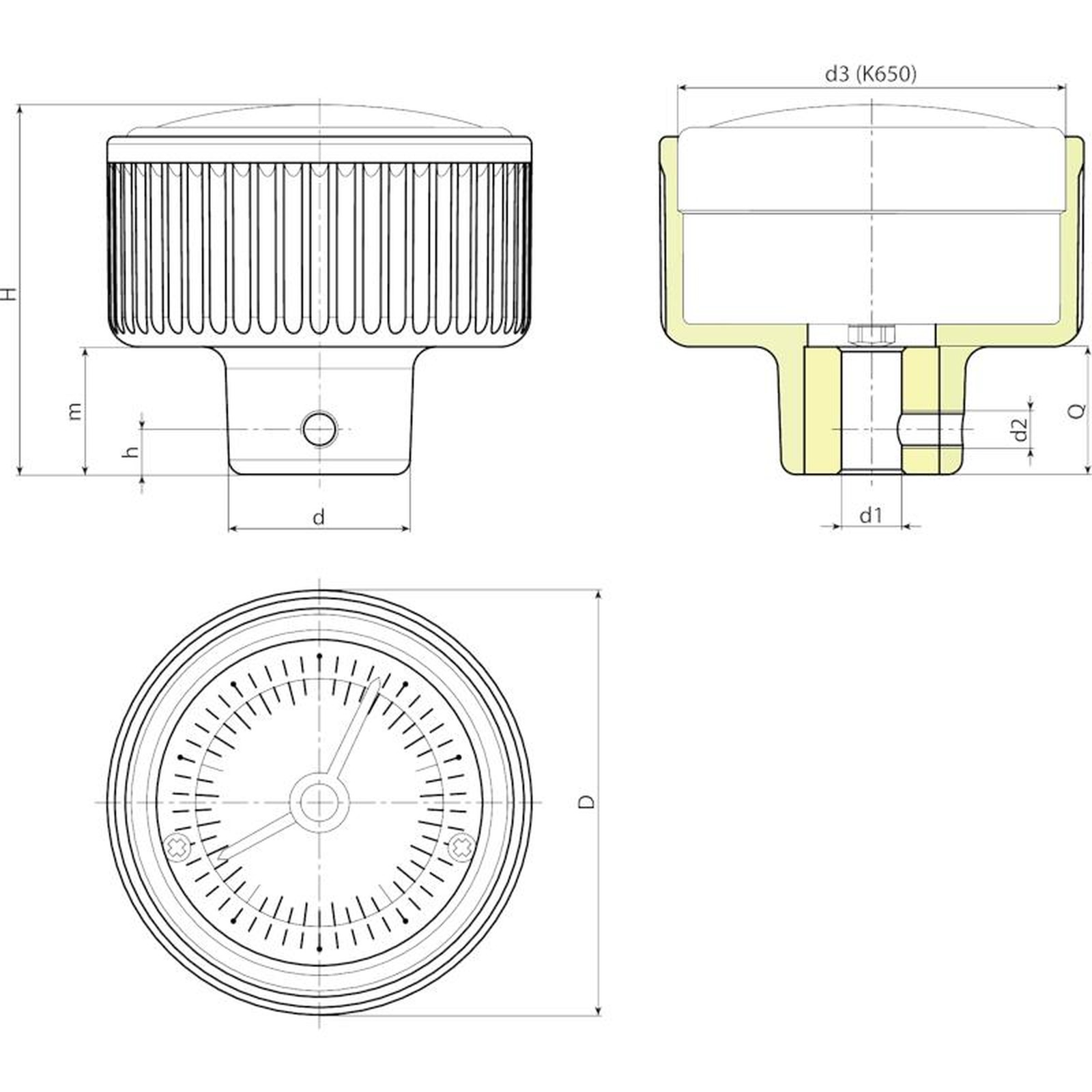 | Code | art. | D | d | H | h | m | d3 | d2 | d1 H10 | dm | Q | Weight (g) |