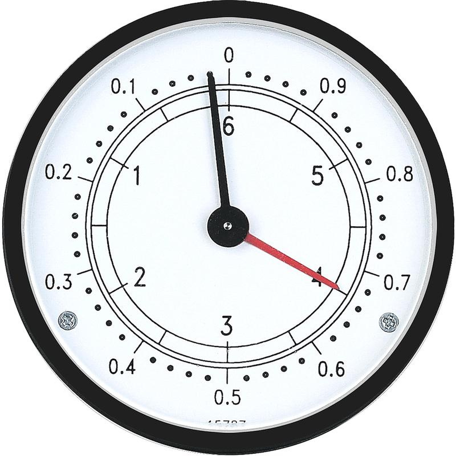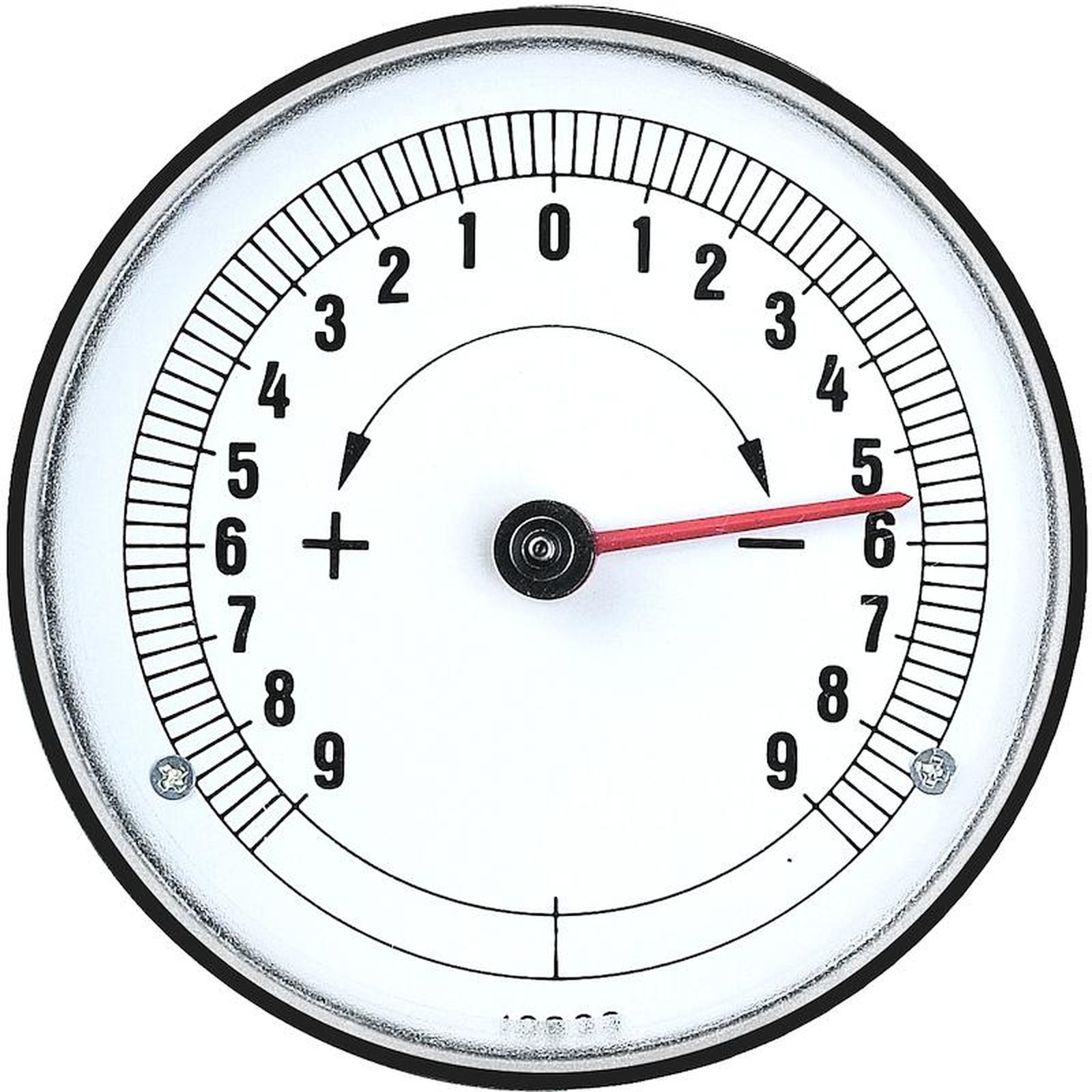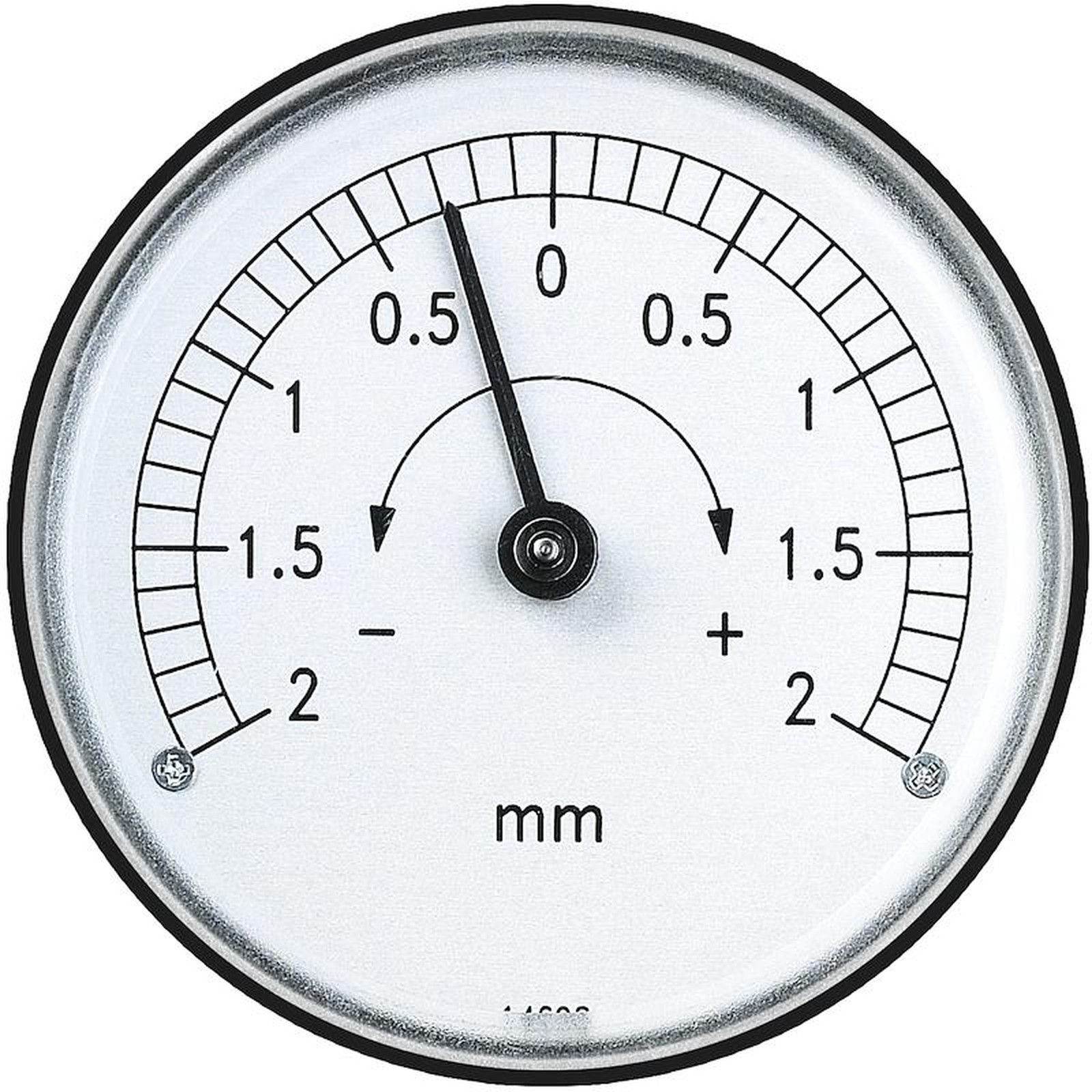 The gear ratio determines the distance to be covered in a given number of revolutions. For example, with a single indicator pointer and a gear ratio of 20, the gear-driven pointer will travel the 360° of the scale every 20 turns of the handwheel, that is, the total setting distance must fall within a single turn of the pointer.