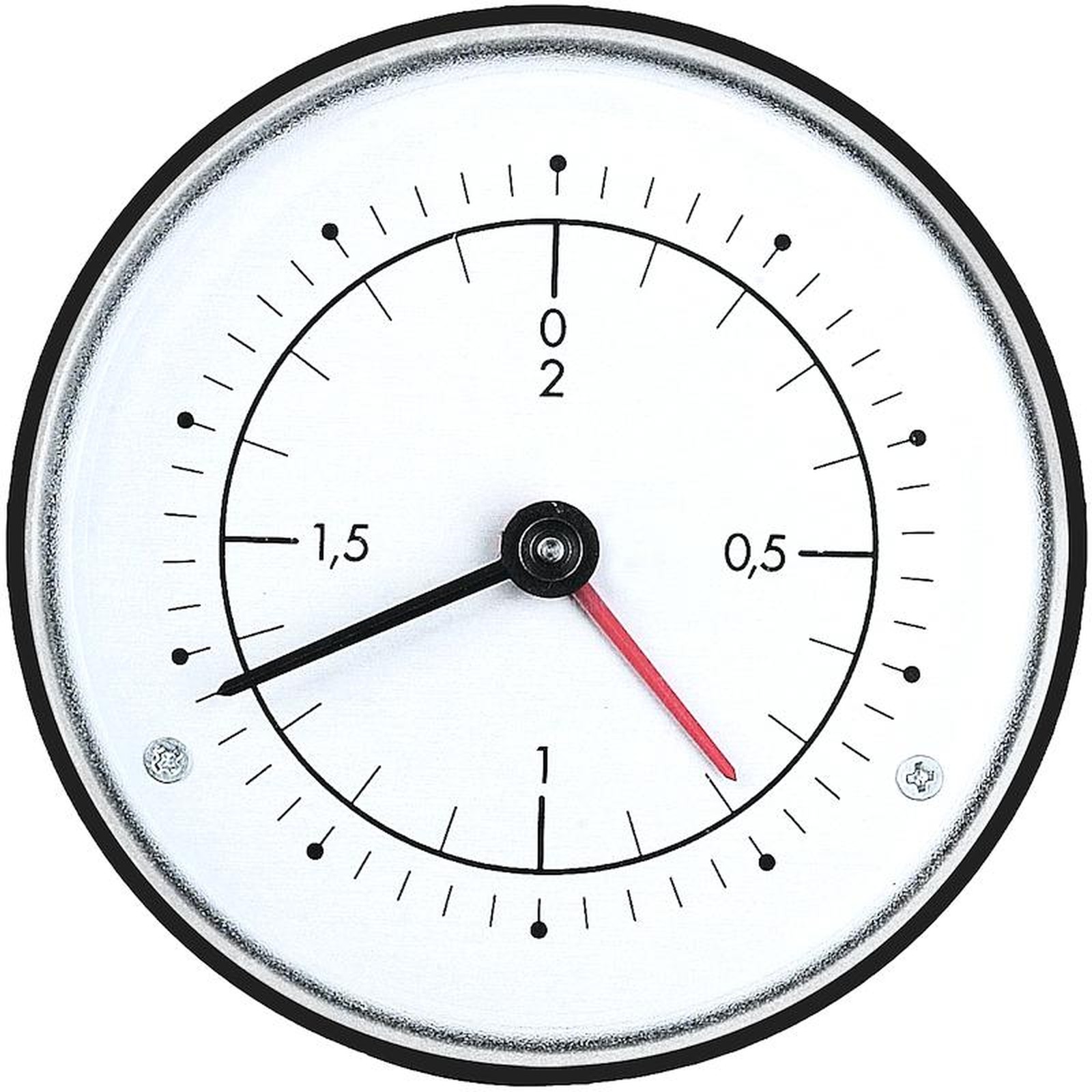 One pointer turns according to the gear ratio, whereas the second one turns with a ratio of 1:1.