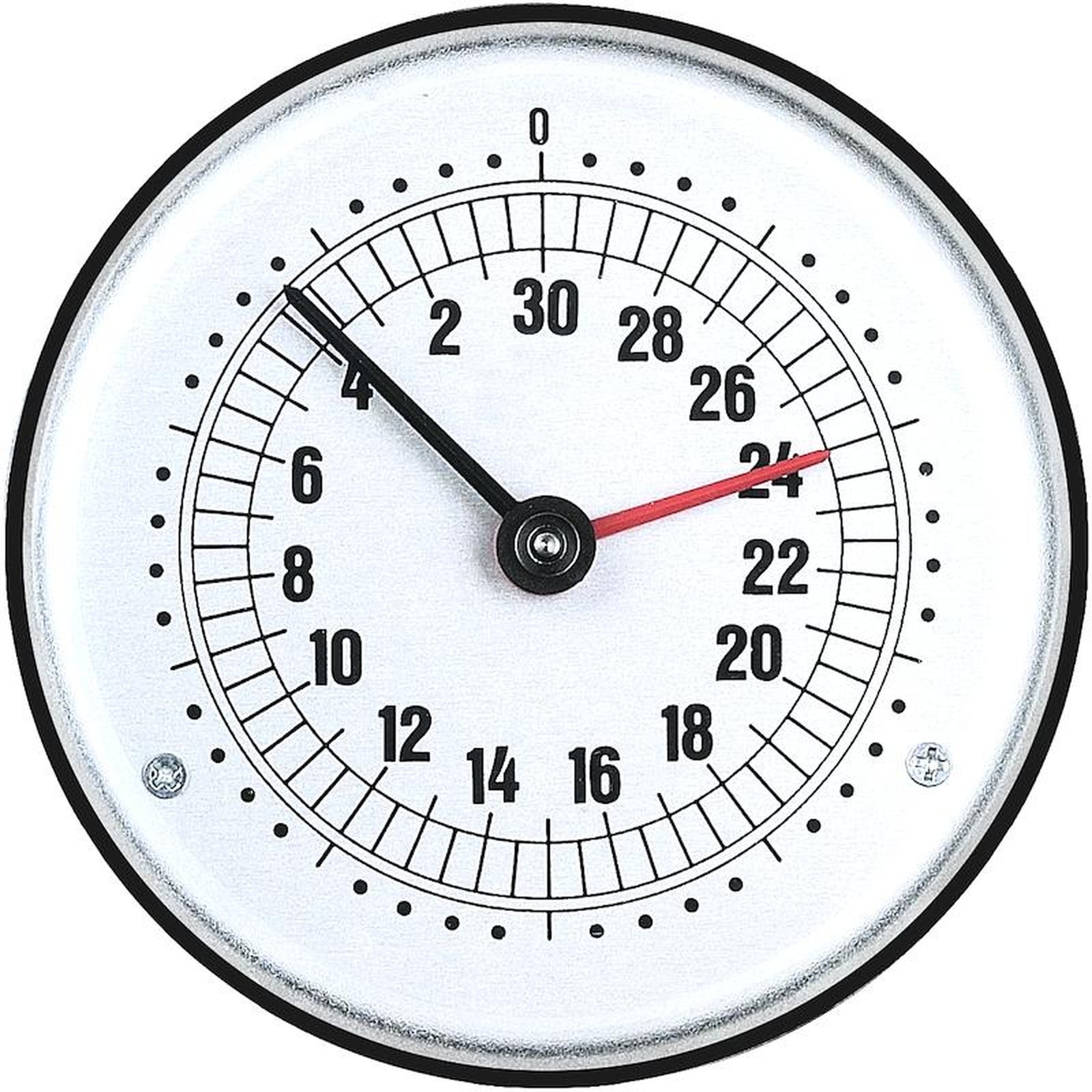 Graduated scale printed in black. With standard graduation, with start and end of the scale combined with the chosen gear ratio. For example, with a gear ratio of 20 the first number of the scale will be 0 and the last number will be 20. Progression of numbers clockwise or counterclockwise depending on the chosen direction of rotation.