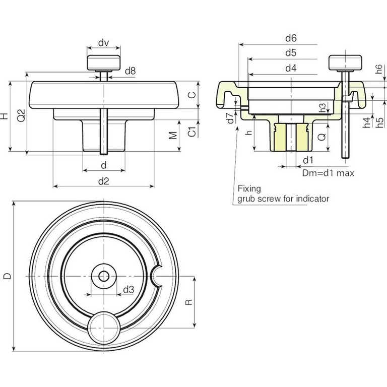 SOLID CONTROL HANDWHEEL WITH INDICATOR SEAT AND LOCKING KNOB