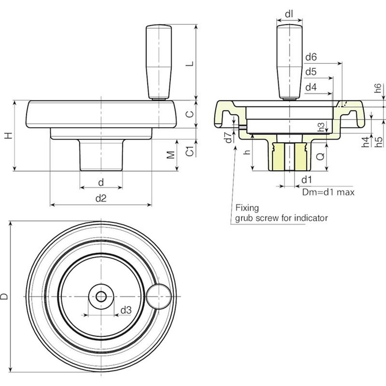 SOLID CONTROL HANDWHEEL WITH INDICATOR SEAT AND REVOLVING HANDLE M129