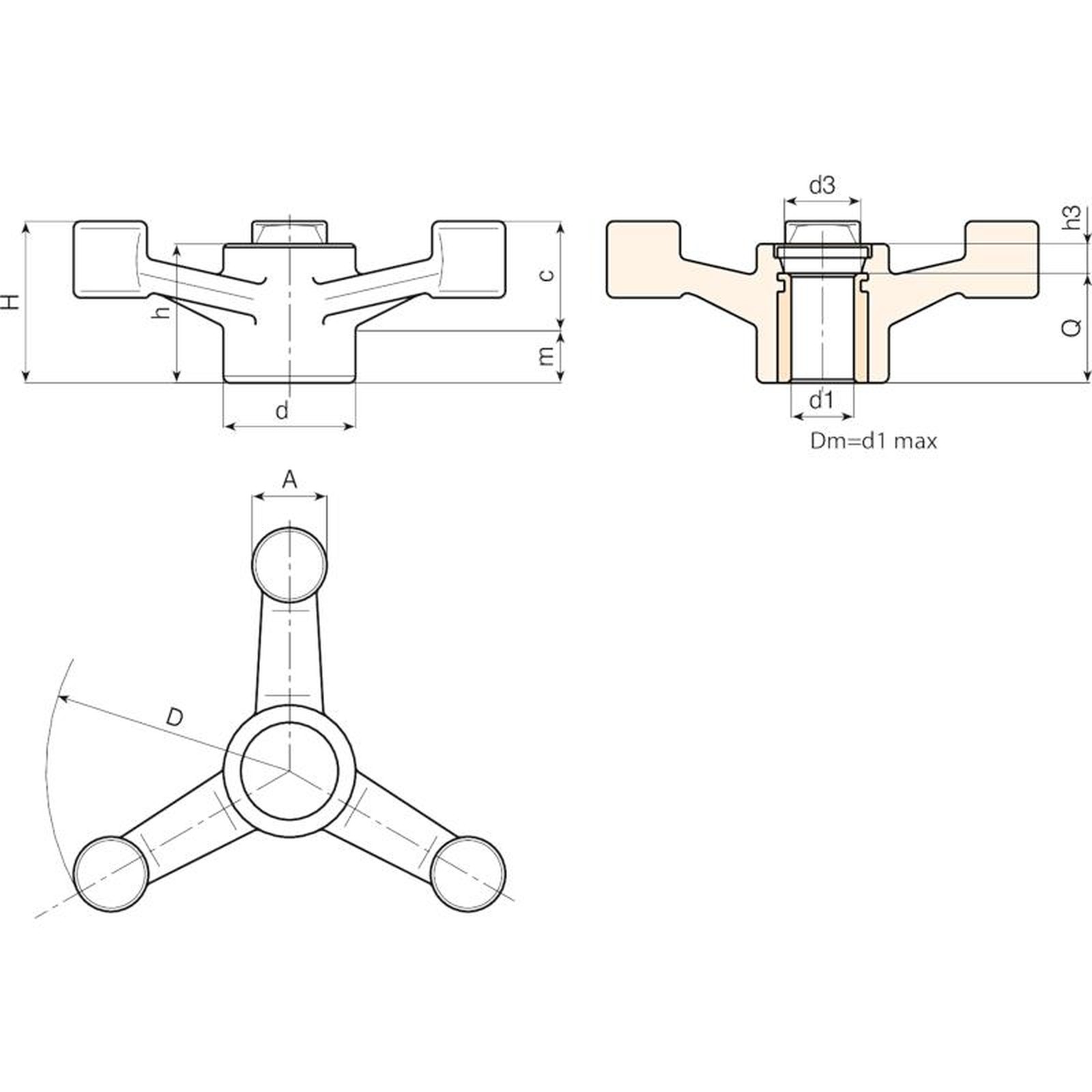 | Code | Art. | D | H | h | d | m | c | A | h3 | d3 | Dm | d1 H10 | Q | Weight (g) |