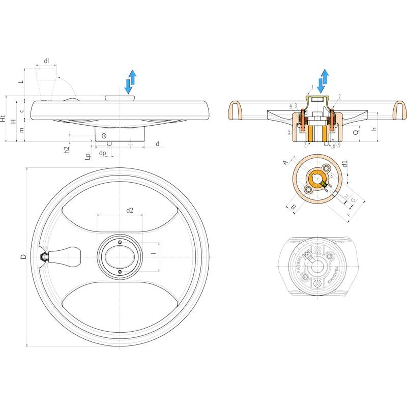 | Code | Art. | D | H | Ht | h | m | c | d | dp | Lp | h2 | A | B | I | N | G | F | d2 | dl | L | d1 H10 | Q | Weight (g) |
