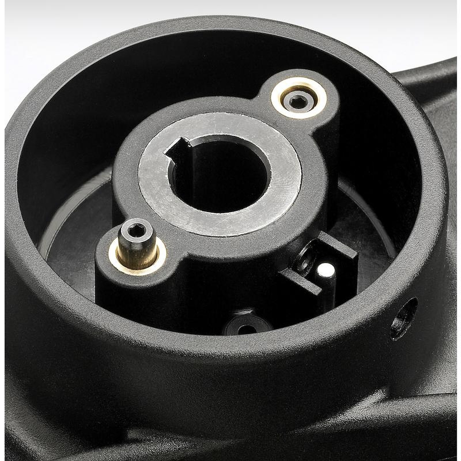 (4) Connection flange for knob, springs, safety pin, and locking pins. Reinforced and stabilized polyamide.