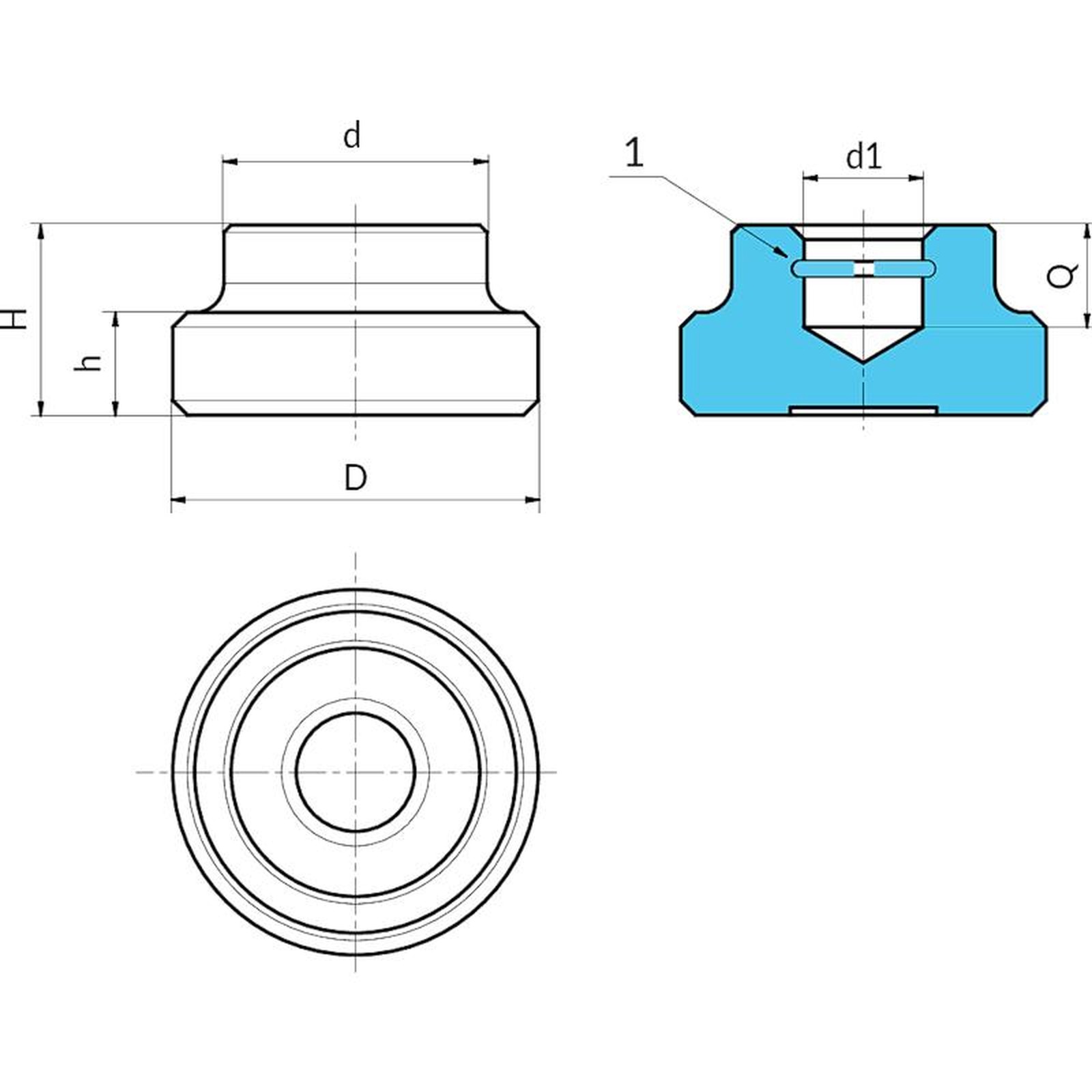 | Code | art. | D | d | H | h | for pins DIN 6332 | d1 H12 | Q | Weight (g) |