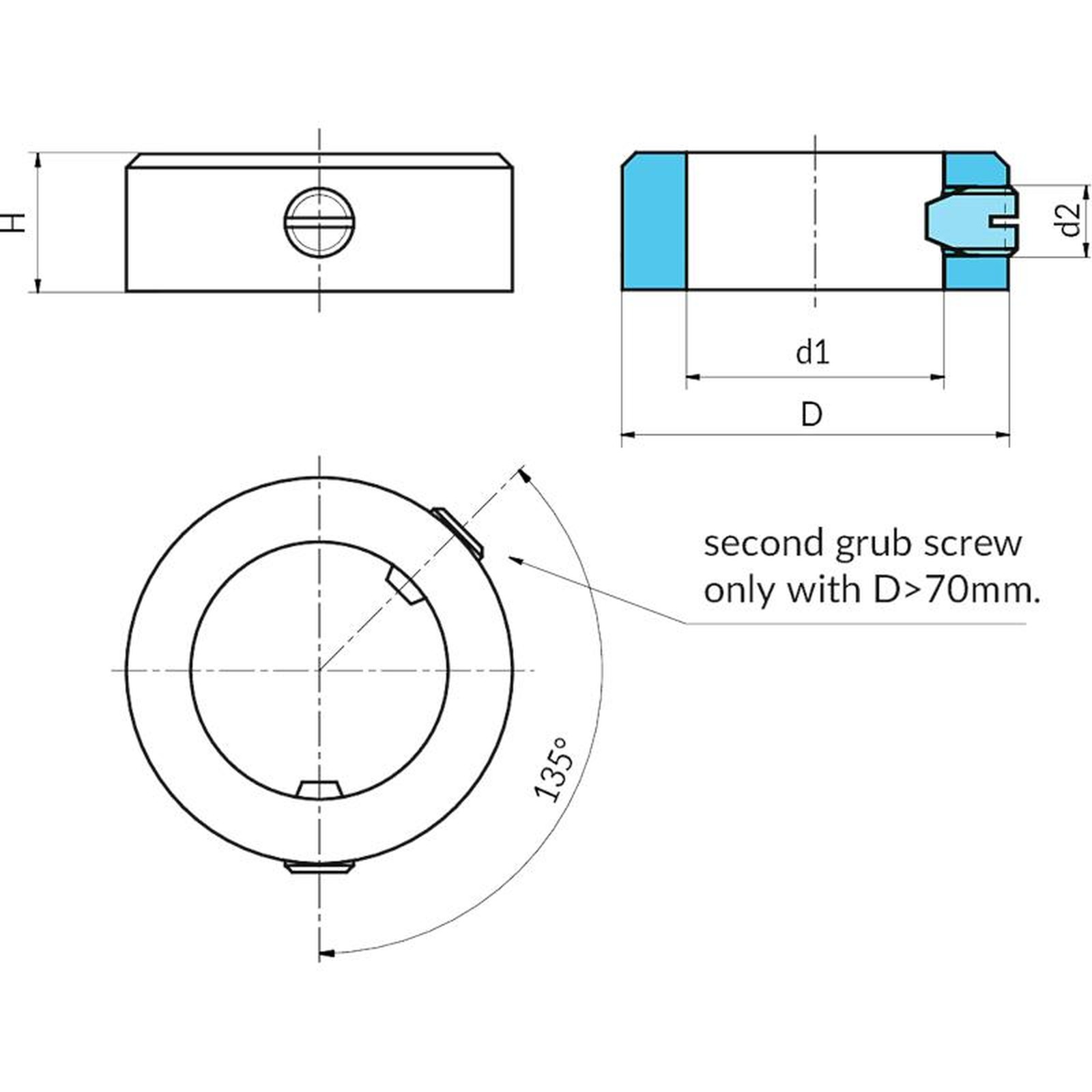 | Code | Art. | D h13 | H js14 | d2 | d1 H8 | Weight (g) |