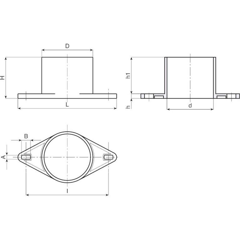| Code | Art. | H | D | d | L | l | A | B | h | h1 | Weight (g) |