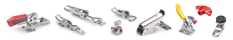 Various latching systems: 1/4 turn locks, bracket systems, toggle latches and toggle clamps. For detailed information on the specifications of each individual product please consult the technical sheet.