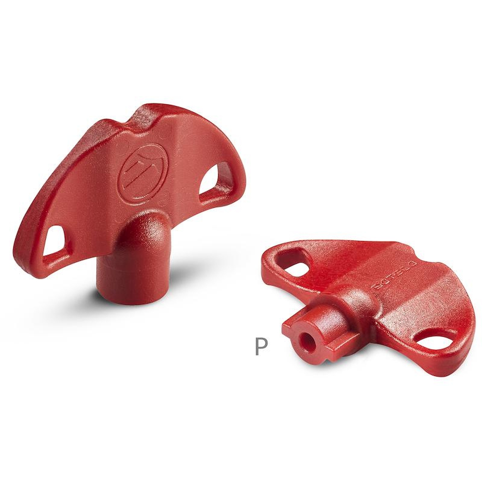 (2) Groove shaped for wing pin key, in reinforced PA6.6 polyamide.