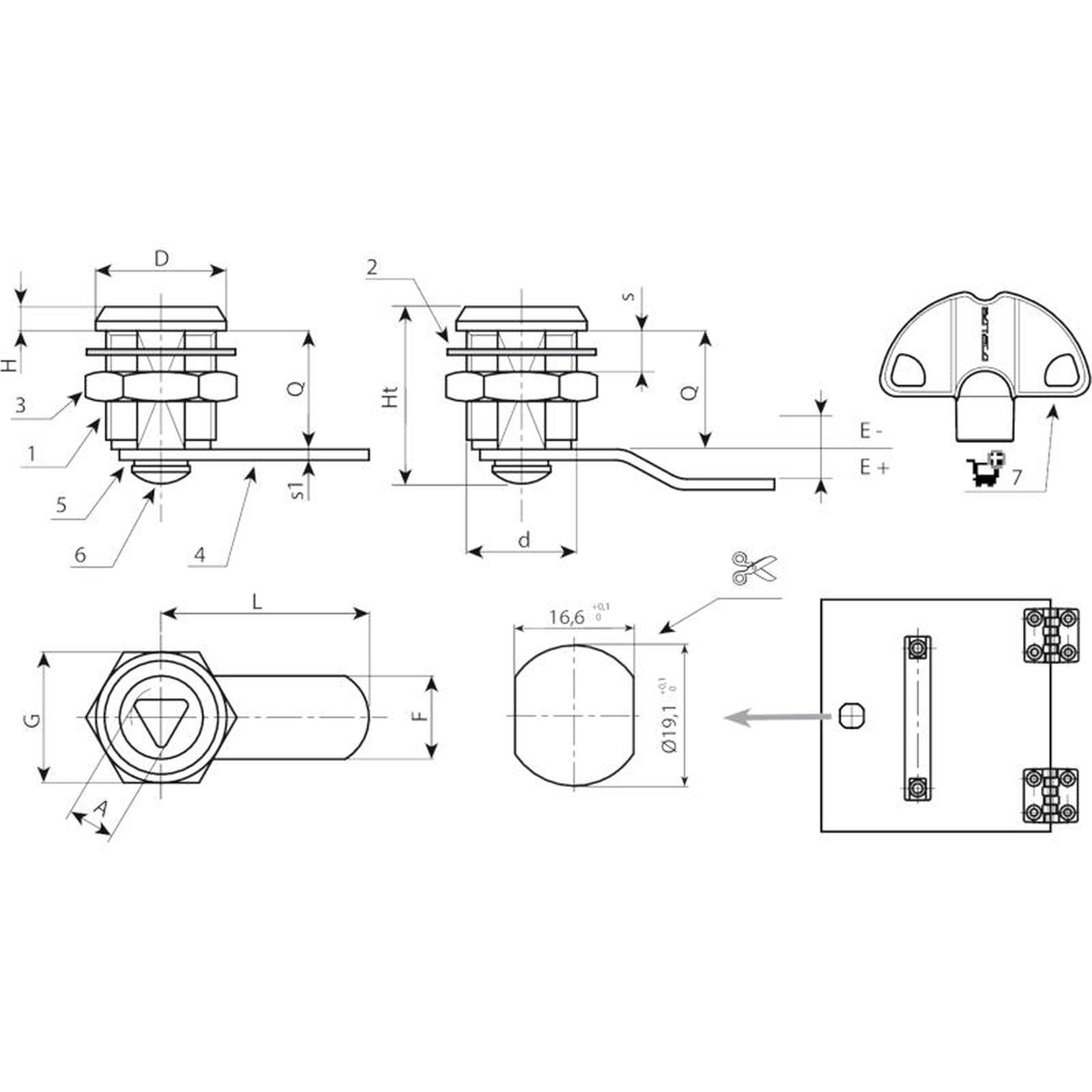 | Code | Art. | A | d | D | L | Q | E | F | G | Ht | H | s (max.) | s1 | Weight (g) | Key |