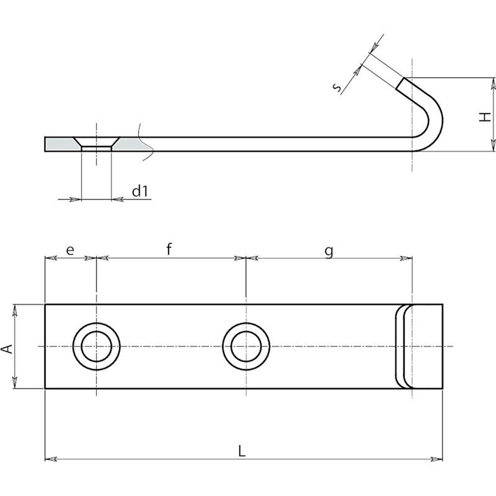 Extended drilled catch plate made of sheared stainless steel (Aisi 304).