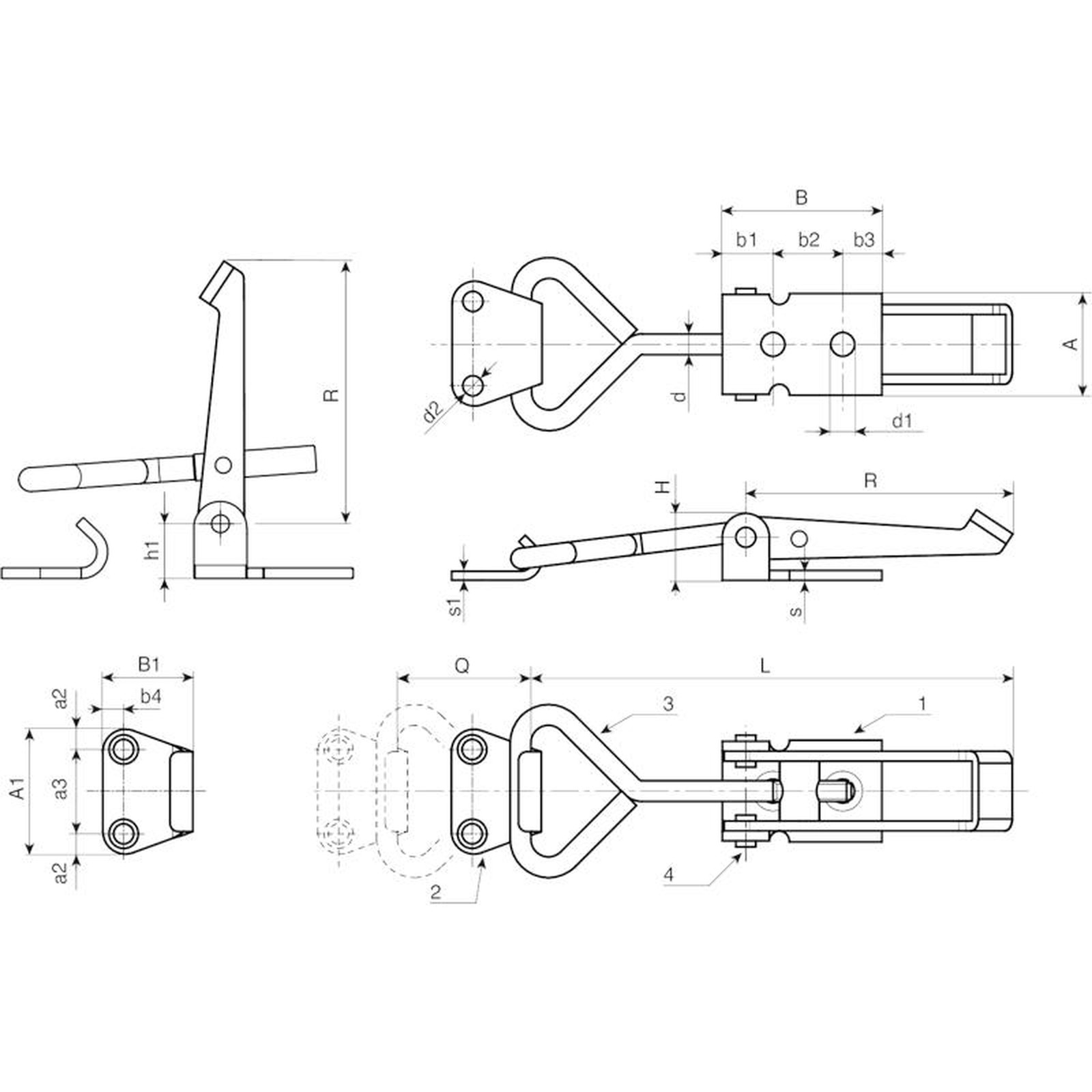 | Code | art. | R | L | Q | H | A | B | A1 | B1 | b1 | b2 | b3 | b4 | a2 | a3 | h1 | s | s1 | d | d1 | d2 | Weight (g) |